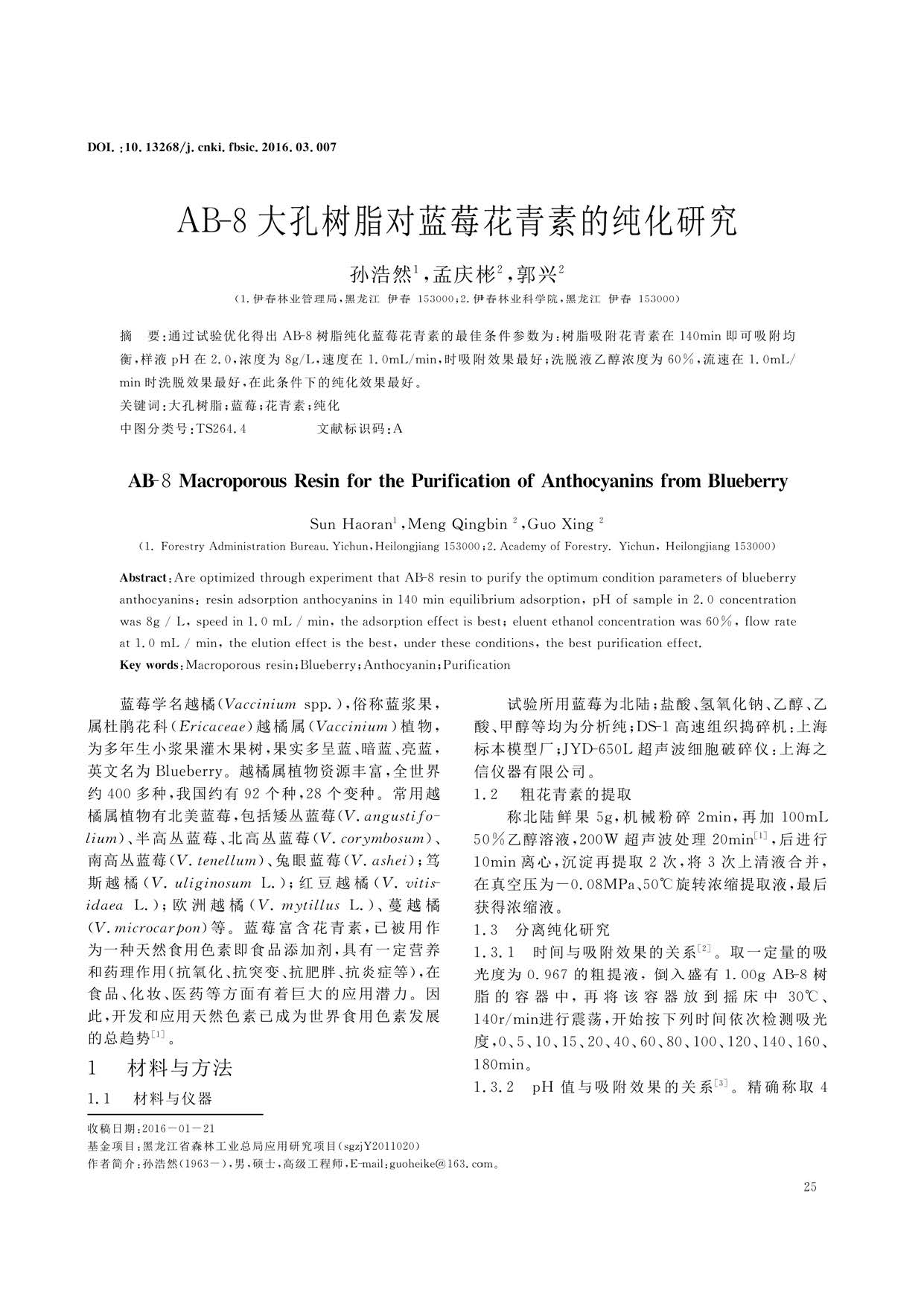 AB--8大孔树脂对蓝莓花青素的纯化研究