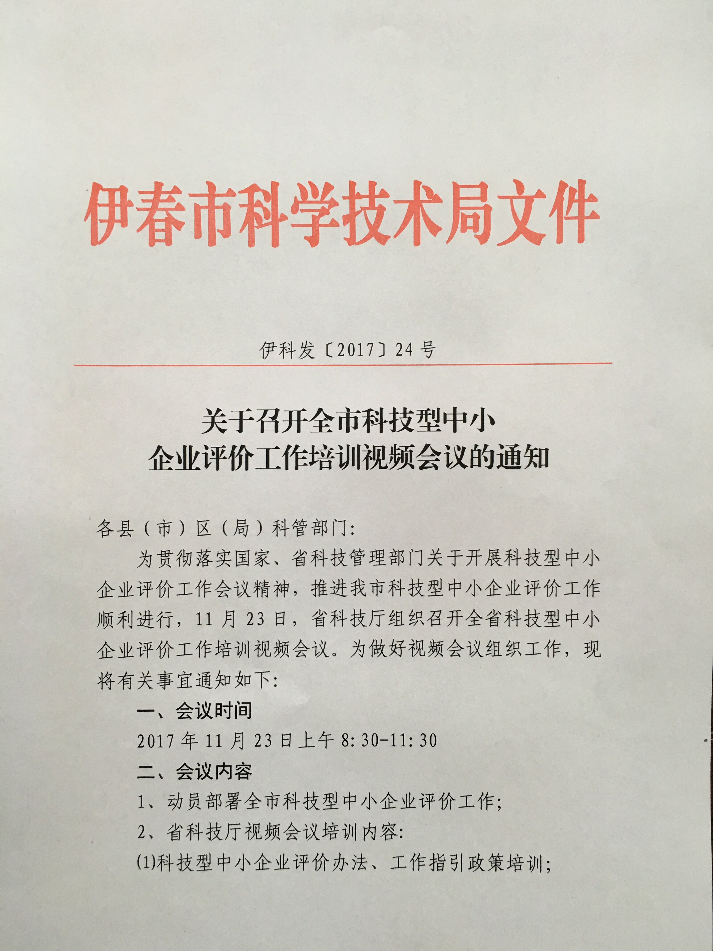 关于召开全市科技型中小企业评价工作培训视频会议的通知